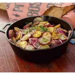 Les deux poêles sont pourvues d’un manche long facile à saisir et à manipuler lorsque vous cuisinez. Une poignée supplémentaire complète l’ensemble pour plus d’aisance au moment de transporter le plat du barbecue à la table. La fonte reste un matériau lourd, mais une nouvelle fois Pitboss a su faire preuve d’ingéniosité pour en optimiser la manipulation.